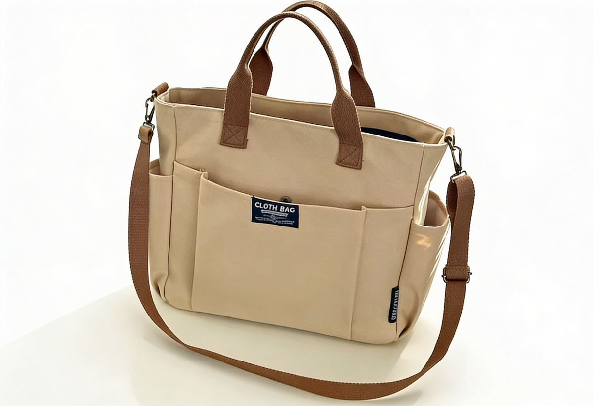 Women’s Canvas Tote Bag – Multi Pocket Large Shoulder Handbag